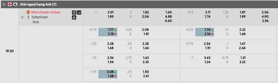 Tỷ lệ kèo Man United vs Tottenham